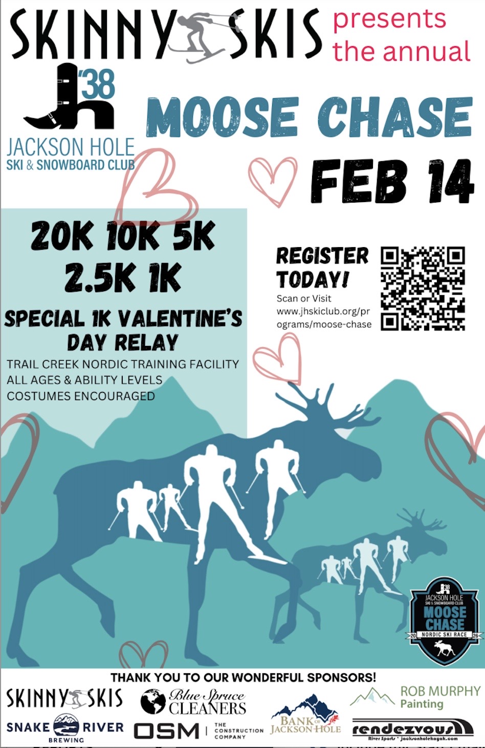 Around Sunday afternoon the Skinny Skis Moose Chase course was looking a bit sketchy after a dry and warm month, but this morning it’s a completely different world. Take yesterday’s four inches and add today’s six inches so far, you get not only 10 inches but a totally revitalized Nordic trail system, just in time for Saturday’s approximately 30th Skinny Skis Moose Chase!