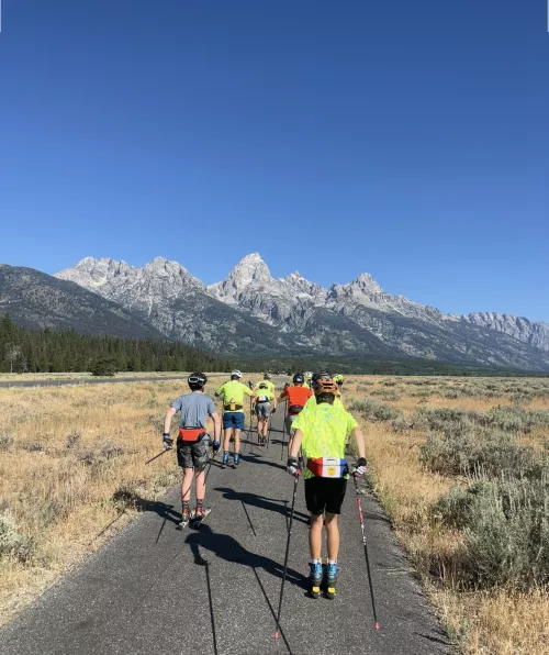 We started off with some rollerski technique and agility then had a mega L3 bounding interval session on Snow King along with a strength test and strength education in the afternoon.  We have capped it off with a long run in the Tetons and a long classic rollerski up north to get views of the mountains.  We have also mixed in water time at Slide Lake and some basketball and spikeball on the fields.  Camp rounds off with a skate sprint simulation on Saturday and some easy workouts to end the week for these amazing JHSC nordic and National U16 Elite athletes!  If you see us around the valley make sure to honk your horn and support our athletes!