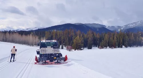 Groomer’s choice for today is to enjoy some spring skiing in the fields.