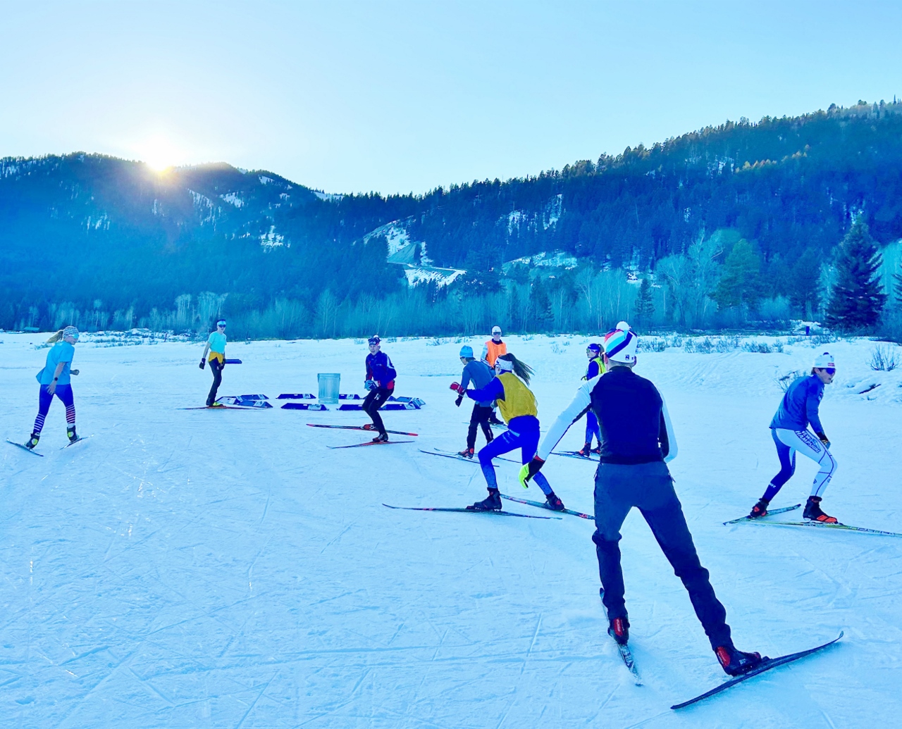The race calendar continued on with WYHS races in Sheridan, WY and the local Moose Chase event! It was fun to see coaches and athletes out supporting and celebrating Valentine’s Day. Even Coach Filardo put on a bib for a win in the 20k! To wrap up a very busy month of racing, the team packed up for the final JNQ of the season in West Yellowstone, MT. The theme of this season has been changes in plans; this race was originally going to be hosted by Bozeman at Crosscut, but was moved due to poor snow conditions. This marked the 8th event this season that was either moved somewhere else or cancelled due to lack of snow. Everyone deserves recognition for their patience and flexibility this season as so many plans have had to change, and often multiple times.