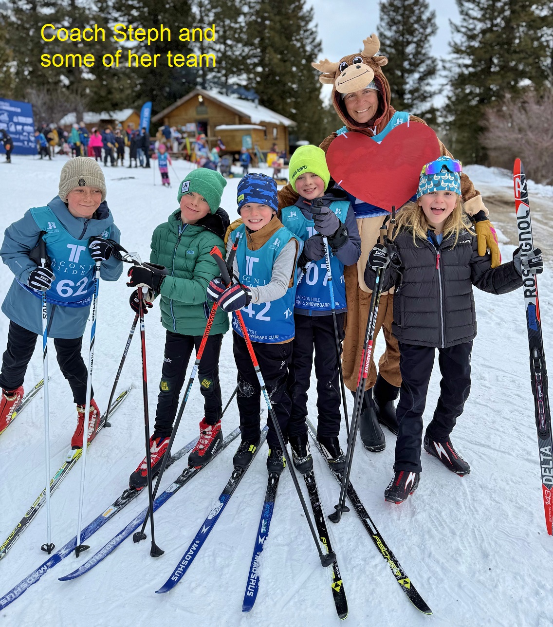 Closer to home, our younger teams have been having a blast at daily practices. We have had practices with guest appearances from the Yetis, Olympics-themed practices with many events and games to play, powder/jump days, and everything in between. The kids have definitely been having a blast and it is great to see the positive energy at practice every day! It is truly inspiring to see the big Nordic energy at Trail Creek every day after school. One highlight of February was the Moose Chase - where over 150 of our JHSC skiers got to put a bib on in a low-stress situation and have fun and ski fast! We had moose costumes, glitter stations, guessing games, fun sunglasses, and tons of kids pushing themselves and discovering independence out on the trails. It was very cool to witness the breadth and depth of the Nordic community from our kindergarteners to retired alums of the program out there racing together.