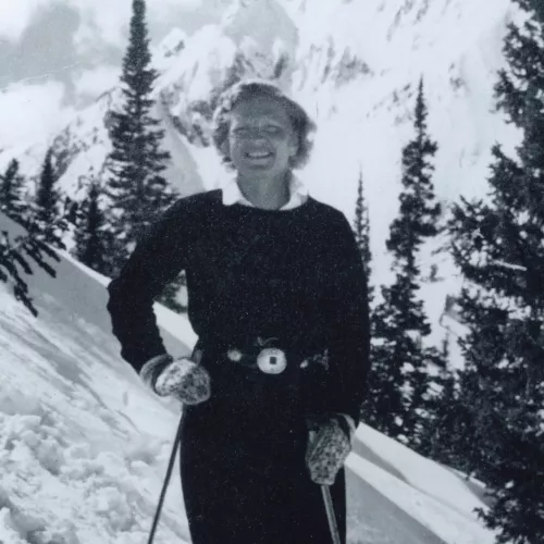 Member of the first-ever US Women' Ski Team (1935) and of the first US Women' Olympic team (1936) when alpine debuted. Purchased Trail Creek Ranch in 1943 and later welcomed JHSC athletes to train there; Trail Creek has been the Club' Nordic training center for over 50 years. A pioneering competitor and foundational supporter of Jackson Hole skiing.