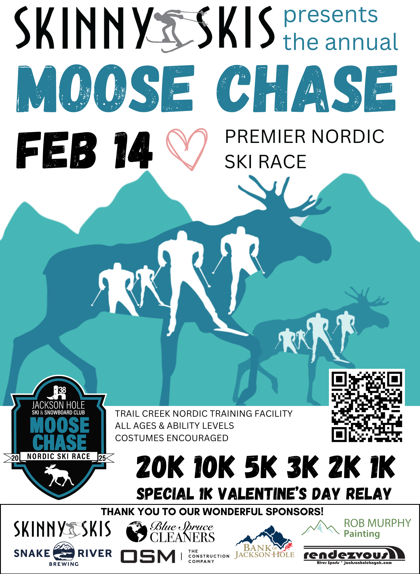 This premier Nordic race includes distances for all ages and ability levels, with a 20K, 10K, 5K, 3K, 2k and a free 1K. This is a skate, or freestyle, Nordic skiing event. There is no specific classic division and no classic tracks.
