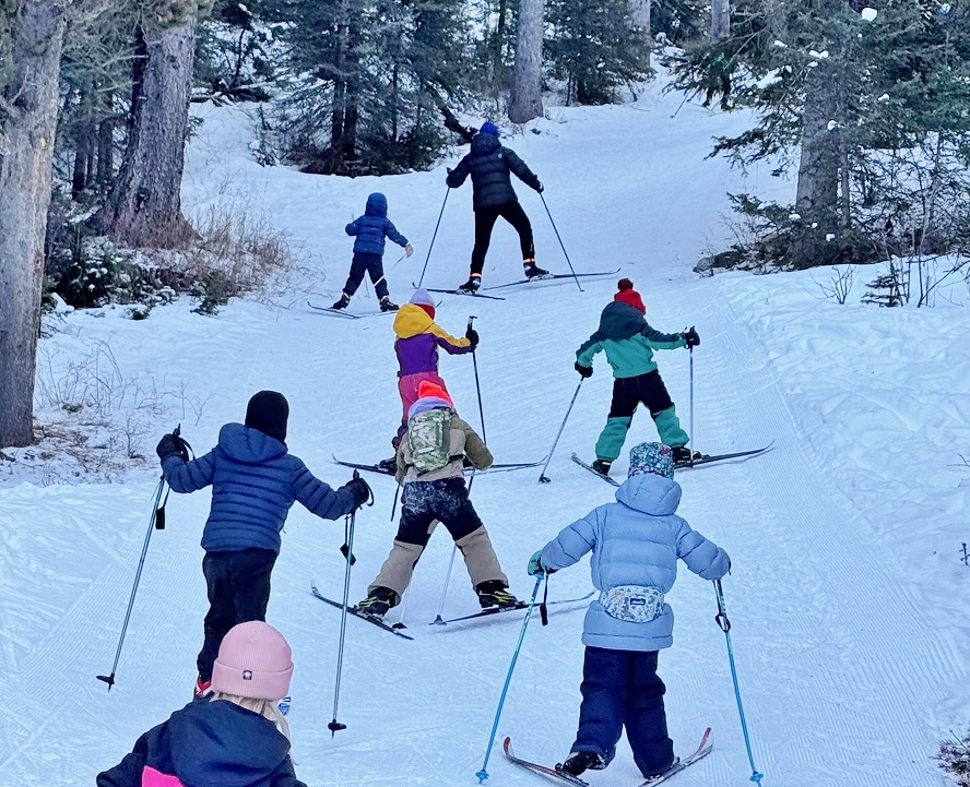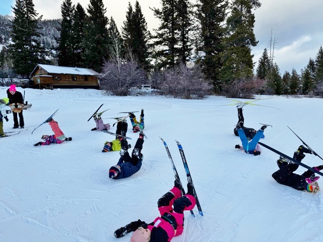 Along the way, we’ve been building strong fundamental ski skills through play. We’ve played games like soccer on skis, What Time Is It Mr. Wolf, Captain, Captain, Can We Cross the River, Squirrel and Nuts, and Red Light, Green Light. We’ve worked on balancing on one ski, rotated through fun skill stations, and introduced some basic skate skills like V2 technique on gentle uphill terrain. Our favorite adventures have taken us to Sam the Truck, Woolsey Woods, Nose Dive, Cle’s Climb, and plenty of trips up and down Grunt — a favorite — where the kids have become noticeably more confident and comfortable skiing downhill on their skis. A few exciting moose sightings made things even more memorable, along with lots of moose stories shared along the way. It’s been a great balance of learning, movement, and fun, and we’re looking forward to many more adventures ahead.